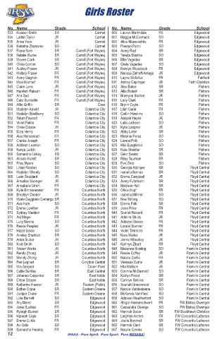 550 Madelyn Arnold JR Columbia City 617 Lilah Gunn FR Fishers 685 Lillian Rollings SR Greenwood Community 752 Macey Zeunik SO Indpls. Bishop Chatard