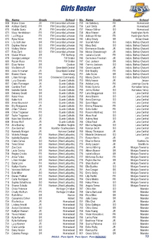 550 Madelyn Arnold JR Columbia City 617 Lilah Gunn FR Fishers 685 Lillian Rollings SR Greenwood Community 752 Macey Zeunik SO Indpls. Bishop Chatard