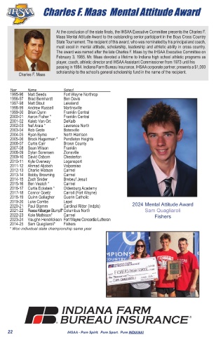 Charles F. Maas Mental Attitude Award Last Year’s State Finals In Review
