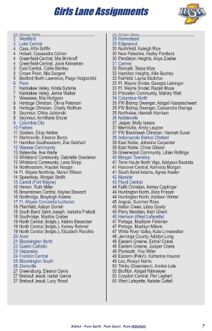 4 Brownsburg 31 Whiteland Community, Colton Watson 5 East Central, Callie Bentley 32 Roncalli, Tessa Mize