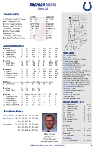 21 Brady Quinn 11 5-11 170 WR / DB 66 Magnus Severson 11 6-3 310 OL / DL 10 Ethan Reyna 12 95 7.0 2.0 1 0 0 Instagram: @andrean59ers