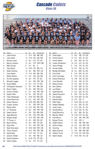18 53rd Annual IHSAA State Football Tournament is proudly presented by the INDIANAPOLIS COLTS. IHSAA - Pure Spirit. Pure Sport. PURE INDIANA! 19