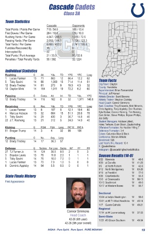 18 53rd Annual IHSAA State Football Tournament is proudly presented by the INDIANAPOLIS COLTS. IHSAA - Pure Spirit. Pure Sport. PURE INDIANA! 19