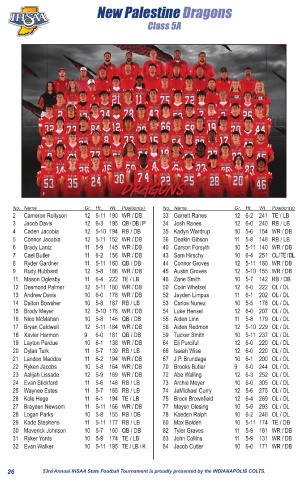 18 Xavier Harmon 9 6-0 161 QB / DB 59 Tucker Smith 10 5-11 237 OL / DL 2 Cameron Rollyson 13 58 13 1 2 1 0 Instagram: @newpalestinedragons