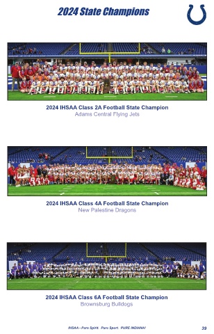 38 53rd Annual IHSAA State Football Tournament is proudly presented by the INDIANAPOLIS COLTS. IHSAA - Pure Spirit. Pure Sport. PURE INDIANA! 39