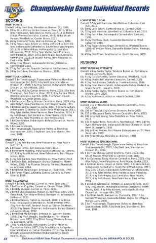 4A: 2 by Bill Manolopolous, Hobart vs. Seymour, 1991; 2 by Chatard vs. Heritage Hills, 2023. MOST PASSING TOUCHDOWNS 2021.