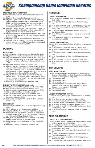 napolis Lutheran, 2019; 3 by DeVuan Jones, Indianapolis LONGEST KICKOFF RETURN