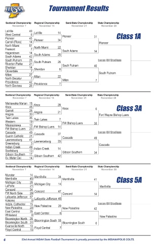 West Central 6 Pioneer Class 1A Rensselaer Central 14 Andrean 52 Class 2A