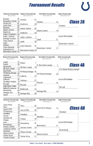 6 53rd Annual IHSAA State Football Tournament is proudly presented by the INDIANAPOLIS COLTS. IHSAA - Pure Spirit. Pure Sport. PURE INDIANA! 7
