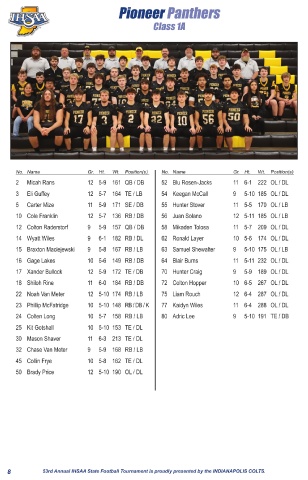 22 Noah Van Meter 12 5-10 174 RB / LB 75 Liam Rouch 12 6-4 287 OL / DL Last Year’s W-L Record: 8-4