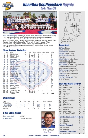 Mgr. Addyson Miller, Coach Liz Zoeller, Coach Whitey Kapsalis, Coach Alyssa Minnick, Team Facts Brooke Reinhart, Emery Simmonds, Maddy Recker
