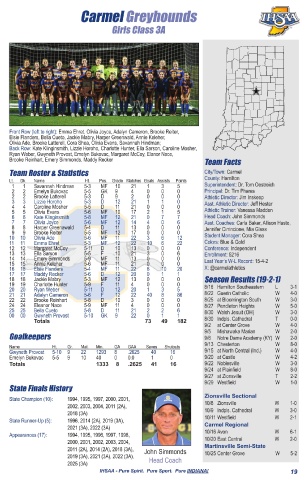 Team Roster & Statistics County: Hamilton Team Roster & Statistics City/Town: Carmel
