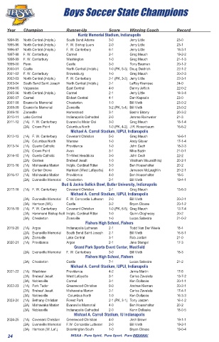 (2A) Evansville Memorial F.W. Concordia Lutheran 2-0 Bill Vieth 19-2-1 Harrison (West Lafayette) Raiders