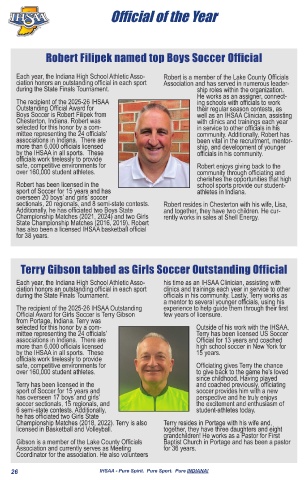 Each year, the Indiana High School Athletic Asso- Robert is a member of the Lake County Officials 2A: 2 by several teams.
