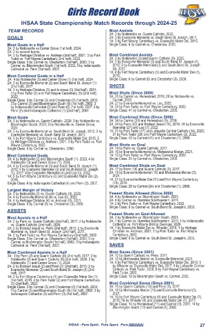 Each year, the Indiana High School Athletic Asso- his time as an IHSAA Clinician, assisting with Largest Margin of Victory Fewest Shots Allowed (Since 2000)