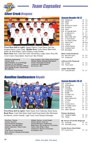 Superintendent: Pat Mapes Student Managers: Addie Kaus, 10/8 Greenfield Central W 5-0 County: Hamilton Mitchell Mercer Carmel Regional