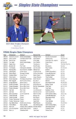IHSAA Singles State Champions IHSAA Doubles State Champions