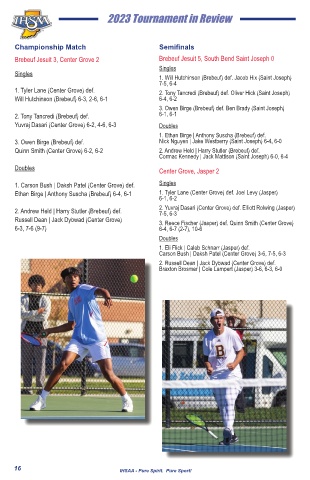 Ethan Birge | Anthony Suscha (Brebeuf) 6-4, 6-1 1. Tyler Lane (Center Grove) def. Joel Levy (Jasper)