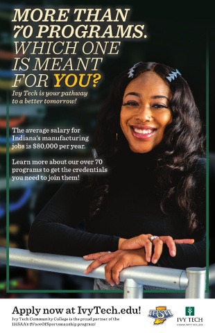 IHS-1329-2023-24 State Finals Program Ads-Become an IHSAA Official-8.5x5.5-FNL.indd 1 9/25/23 10:08 AM IHS-1335 Ivy Tech Program Ads-Ad 1-5.5x8.5-FNL.indd 1 9/25/23 10:19 AM