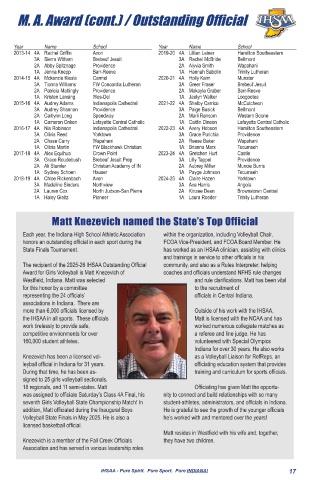 1988-89 Julie VonDielingen Seymour 2006-07 4A Kim Kuzma Muncie Central Award for Girls Volleyball is Matt Knezevich of coaches and officials understand NFHS rule changes