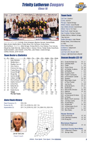 Last Year’s W-L Record: 28-5 Front Row (left to right): Liv Holle, Olivia Schepman, Blayklee Hancock, Kennedi Butler, Kinsley Storey, Olivia Schepman,